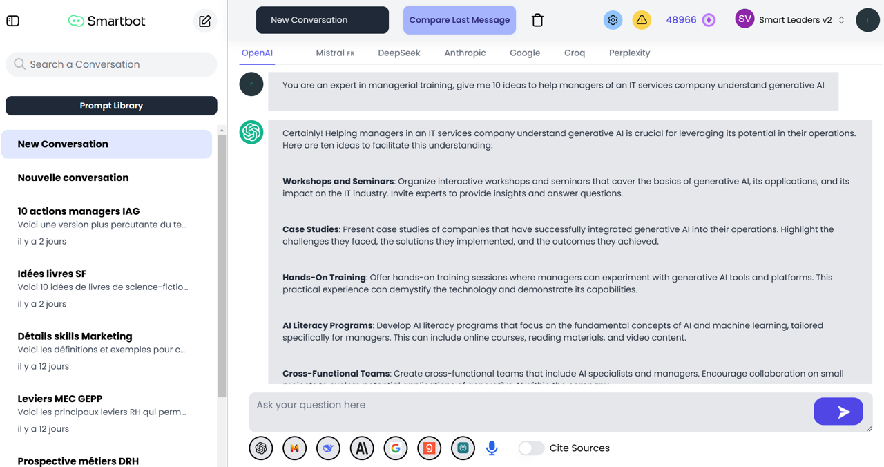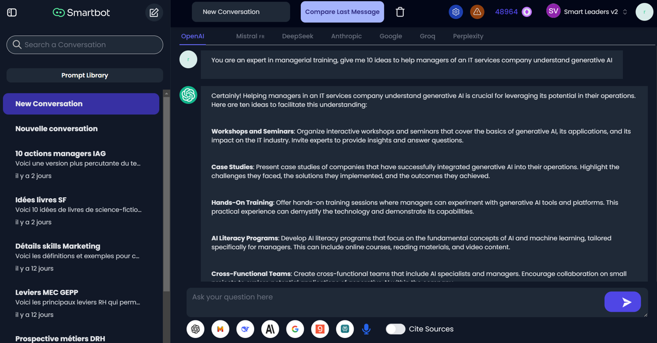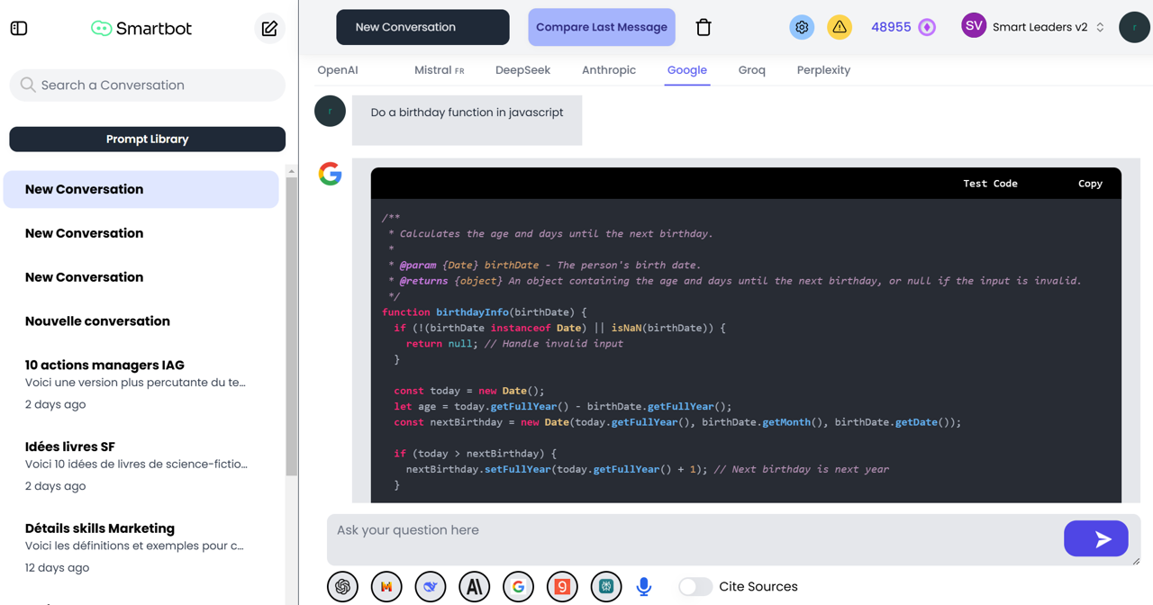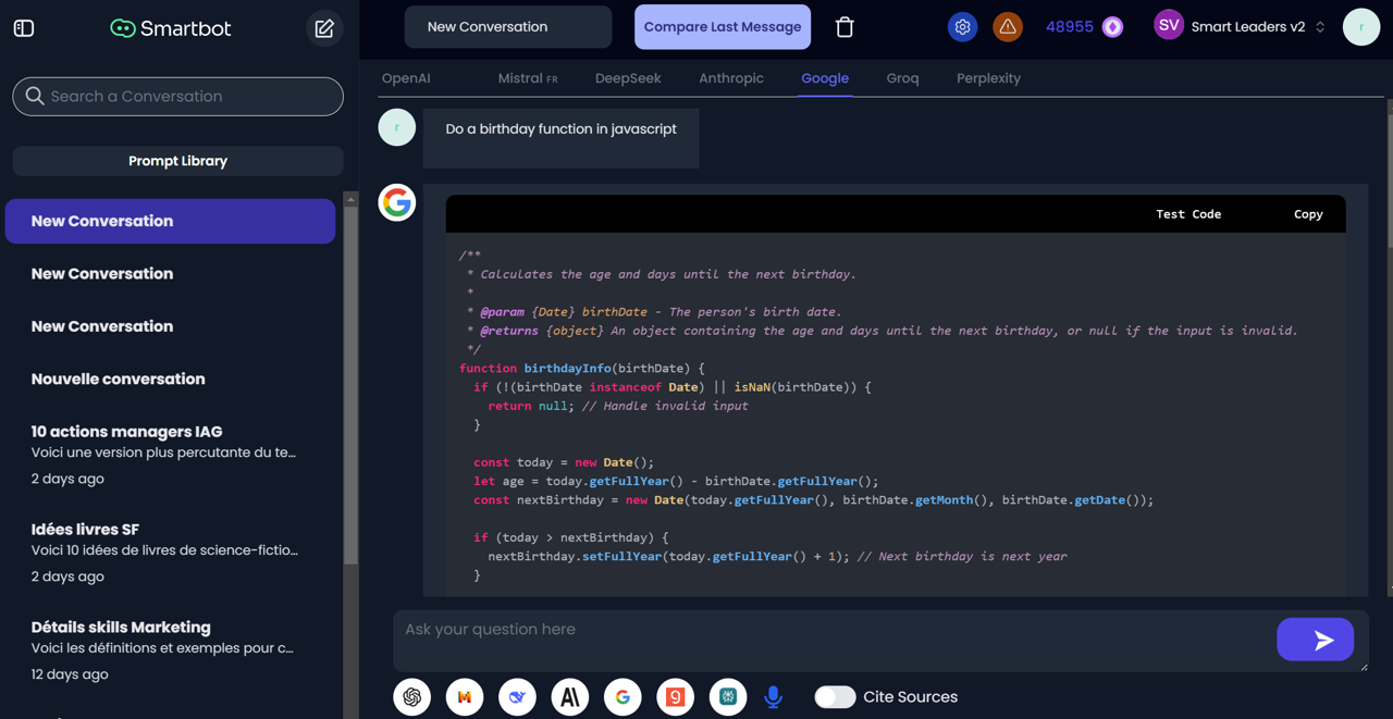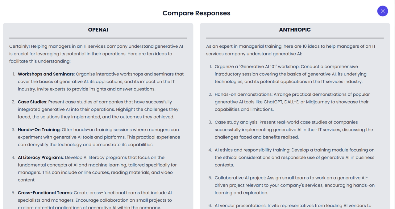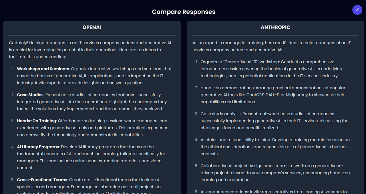 Access the best AI models on the market, such as ChatGPT, Mistral AI, Claude, Gemini, Groq, Perplexity, and compare the quality of responses to choose the model that suits you best.